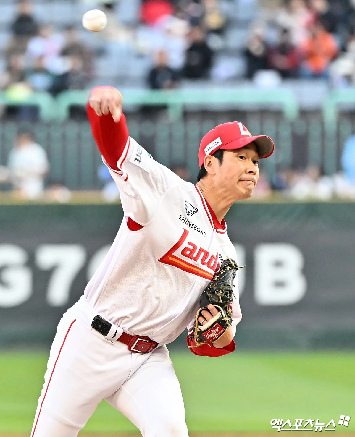 (엑스포츠뉴스 인천, 김한준 기자) 7일 오후 인천SSG랜더스필드에서 열린 '2026 신한 SOL Bank KBO리그' 한화 이글스와 SSG 랜더스의 경기, 1회초 SSG 선발투수 타케다가 공을 힘차게 던지고 있다.