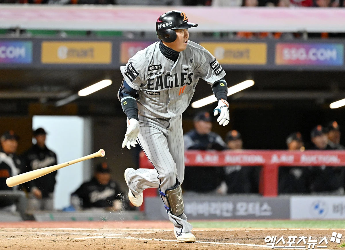 (엑스포츠뉴스 인천, 김한준 기자) 7일 오후 인천SSG랜더스필드에서 열린 '2026 신한 SOL Bank KBO리그' 한화 이글스와 SSG 랜더스의 경기, 3회초 2사 만루 한화 하주석이 2타점 적시타를 날리고 있다.