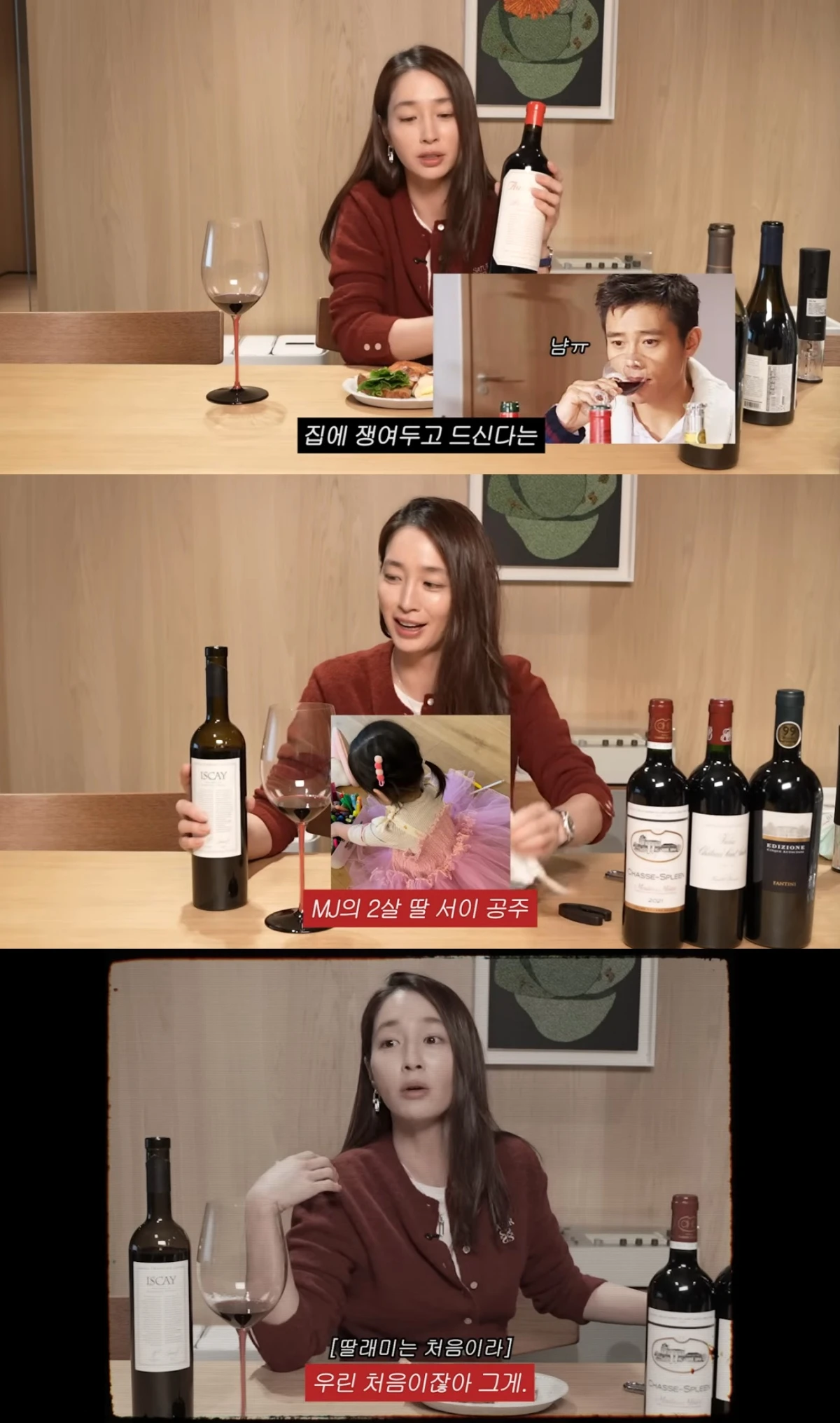 이민정은 이 와인과 딸 서이를 언급하며 "이 와인 너무 세다. 이서이 같다"며 "이 와인은 이서이 때문에 괴로운 저에게 추천한다"고 말해 웃음을 자아냈다.