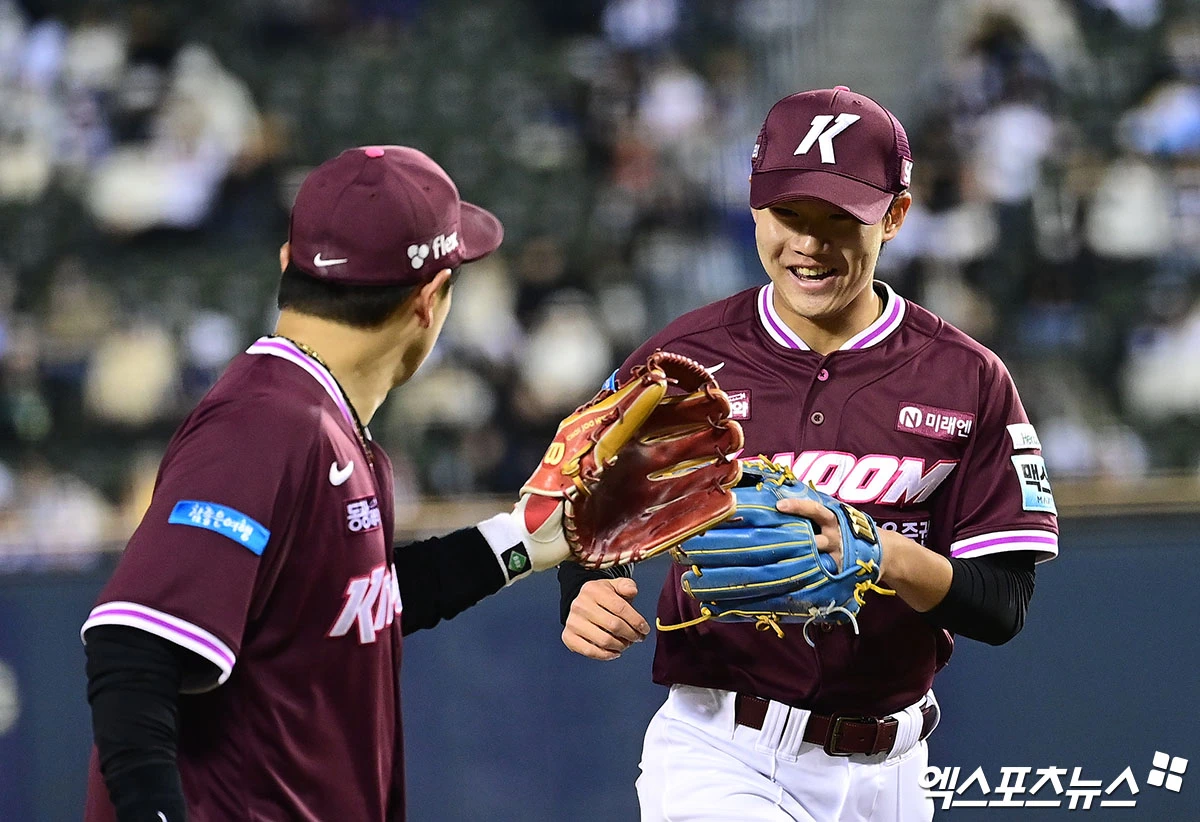 (엑스포츠뉴스 잠실, 박지영 기자) 7일 오후 서울 송파구 잠실야구장에서 열린 '2026 신한 SOL Bank KBO리그' 키움 히어로즈와 두산 베어스의 경기, 4회말 2사 1,2루 두산 김민석의 내야 땅볼 때 키움 2루수 박한결이 타구를 잡아 1루로 송구, 아웃카운트를 올리며 이닝을 마친 뒤 더그아웃으로 향하고 있다.