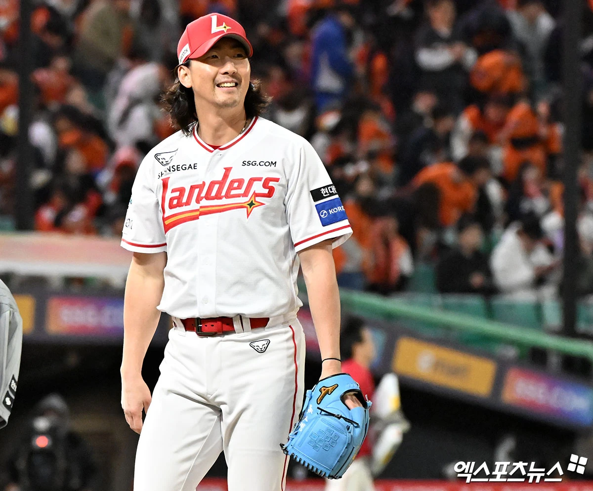 (엑스포츠뉴스 인천, 김한준 기자) 7일 오후 인천SSG랜더스필드에서 열린 '2026 신한 SOL Bank KBO리그' 한화 이글스와 SSG 랜더스의 경기, 5회초 수비를 마친 SSG 문승원이 더그아웃으로 향하고 있다.