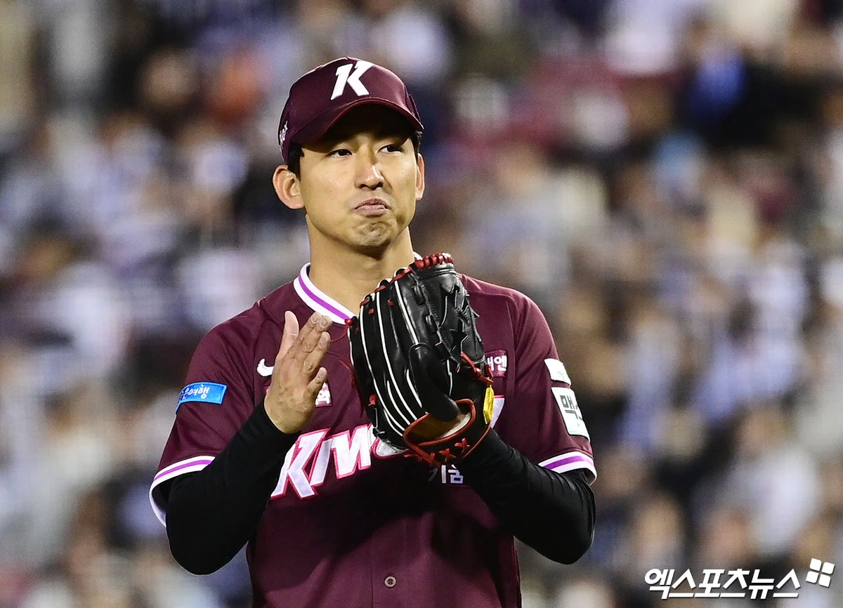 (엑스포츠뉴스 잠실, 박지영 기자) 7일 오후 서울 송파구 잠실야구장에서 열린 '2026 신한 SOL Bank KBO리그' 키움 히어로즈와 두산 베어스의 경기, 6회말 2사 2,3루 키움 유토가 두산 양석환을 내야 플라이로 돌려세우며 이닝을 종료시킨 뒤 기뻐하고 있다.