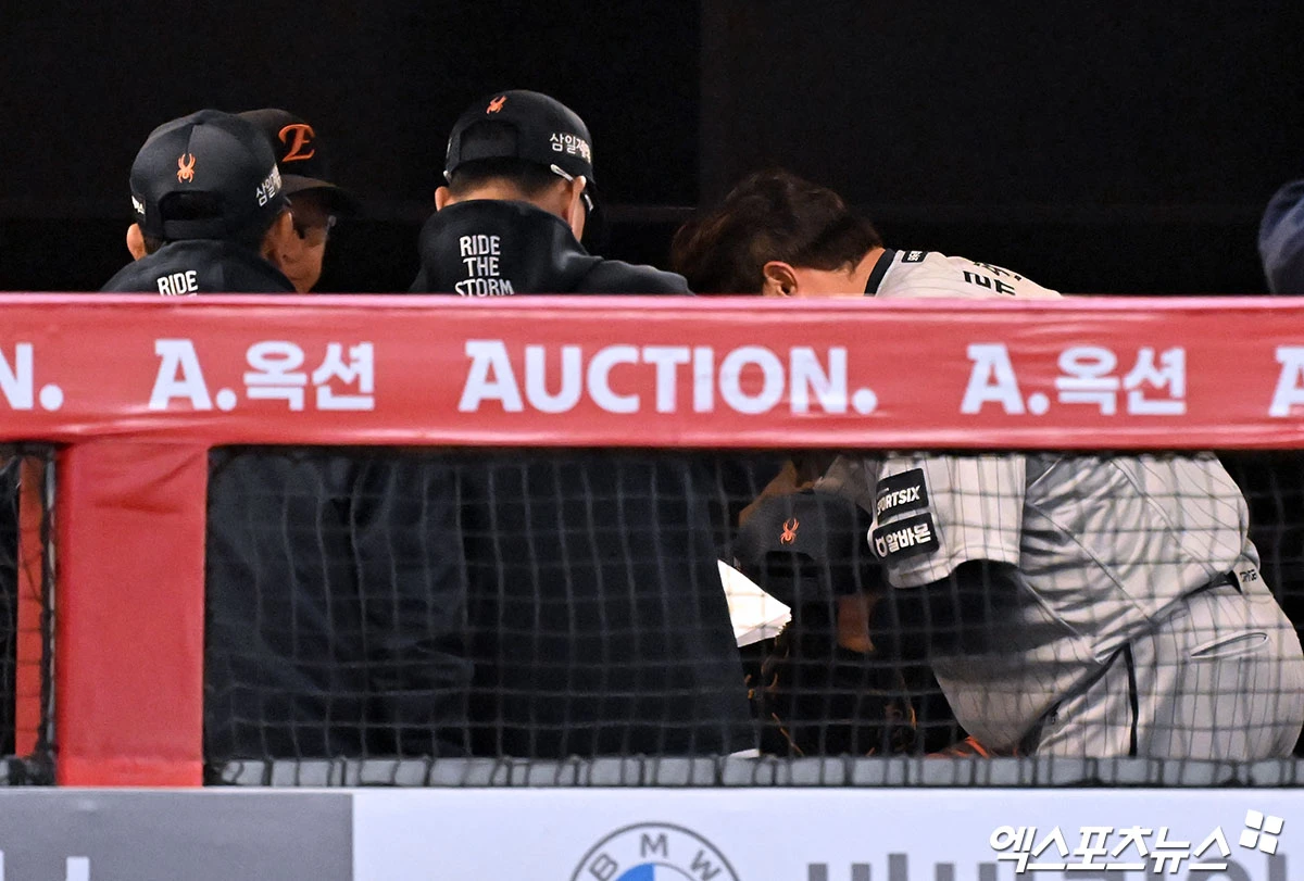 (엑스포츠뉴스 인천, 김한준 기자) 7일 오후 인천SSG랜더스필드에서 열린 '2026 신한 SOL Bank KBO리그' 한화 이글스와 SSG 랜더스의 경기, 6회말 수비를 마친 한화 류현진이 김경문 감독의 격려를 받고 있다.