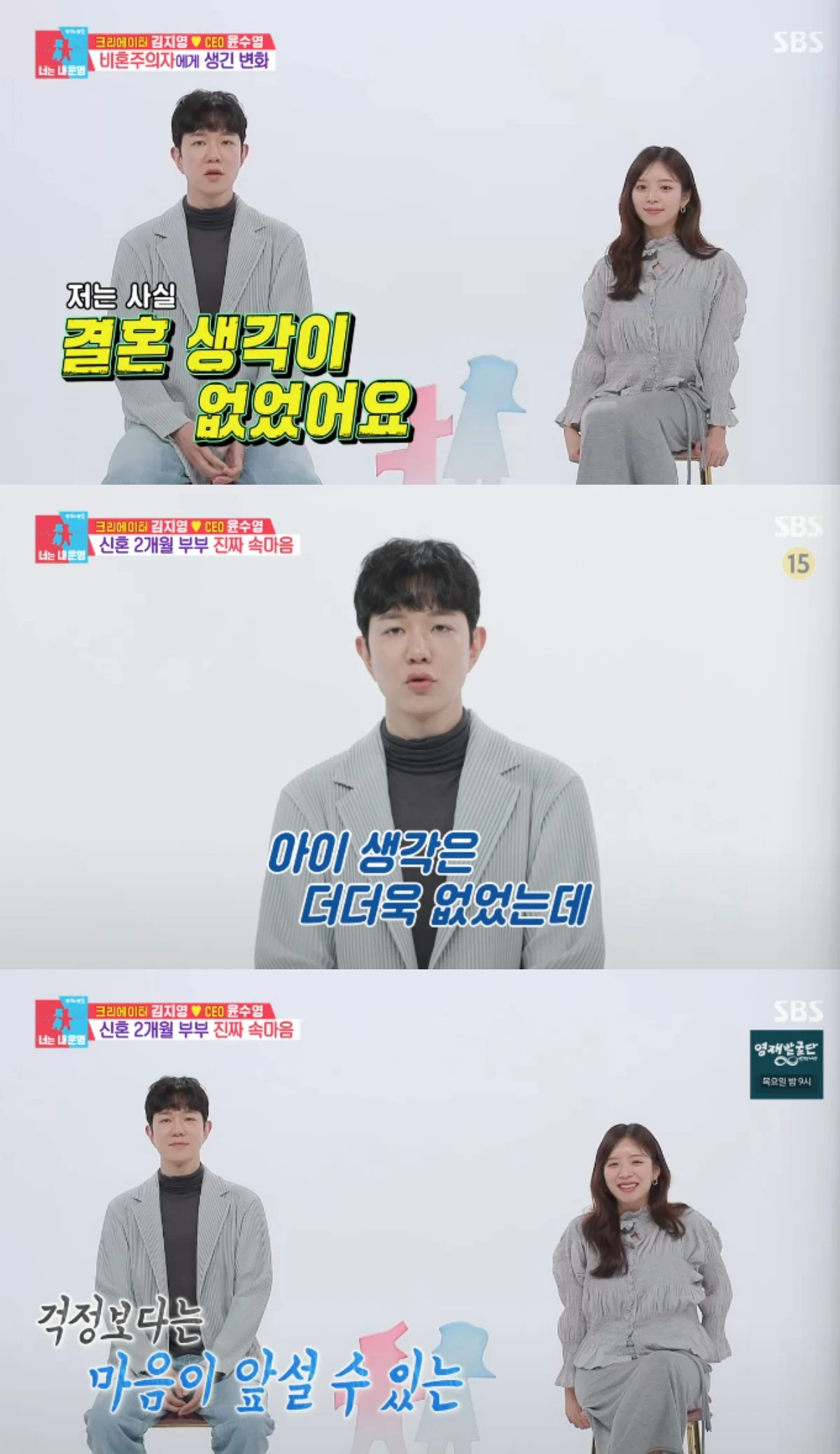 하지만 윤수영은 원래 결혼 생각이 전혀 없던 사람이었다고. 윤수영은 "결혼 생각이 없었고, 아이를 낳을 생각은 더더욱 없었다"고 말했다.