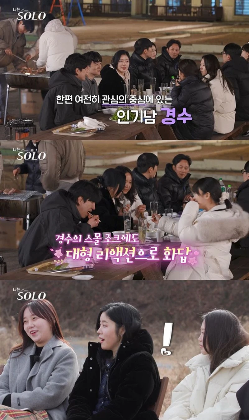 앞서 첫 만남에서 무려 5명의 솔로녀들의 마음을 사로잡은 경수는, 첫날 밤 저녁 식사 자리에서도 여러 솔로녀에게 질문 폭격을 받는 등 여전한 인기 행보를 보인다.
