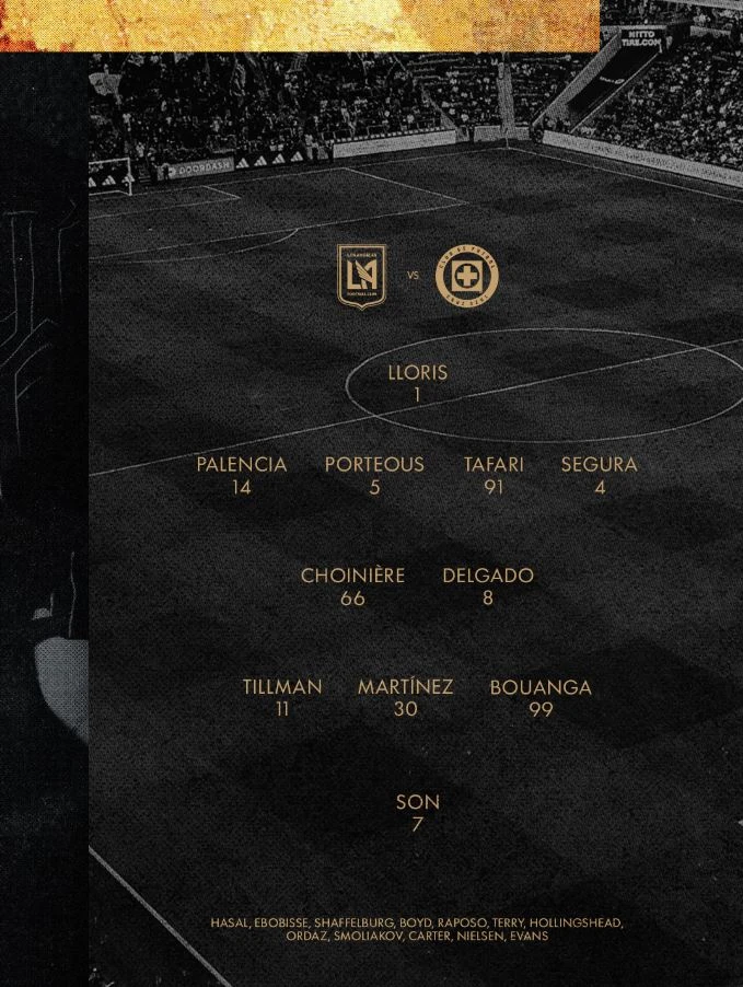 홈팀 LAFC는 4-2-3-1 포메이션을 가동했다. 휴고 요리스가 골문을 지켰고 에디 세구라, 은코시 타파리, 라얀 포르테우스, 세르지 팔렌시아가 백4를 형성했다. 중원에는 마르코 델가도와 마티외 슈아니에르가 배치됐고 2선에는 드니 부앙가, 다비드 마르티네즈, 티모시 틸먼이 나섰다. 최전방에는 손흥민이 출전했다.