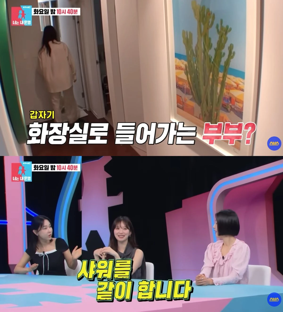 이에 대해 윤수영은 "아내가 저와 한시도 떨어지지 않으려고 한다. 그런데 부부가같이 샤워하면 좋은 것 같다"고 이야기했다. 김지영도 "사랑 호르몬 옥시토신이 나온다고 하더라. 부부 애착도도 높아진다고 들었다"고 밝혔다.