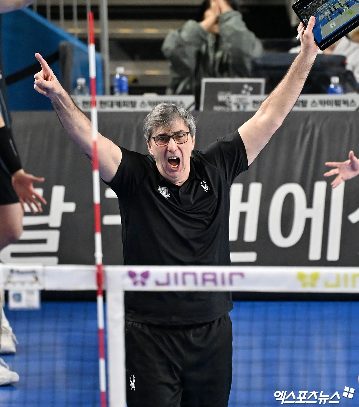 (엑스포츠뉴스 천안, 김한준 기자) 8일 오후 충남 천안유관순체육관에서 열린 '진에어 2025-2026 V-리그' 현대캐피탈과 대한항공의 챔피언결정전 4차전 경기, 현대캐피탈이 필립 블랑 감독이 기뻐하고 있다.
