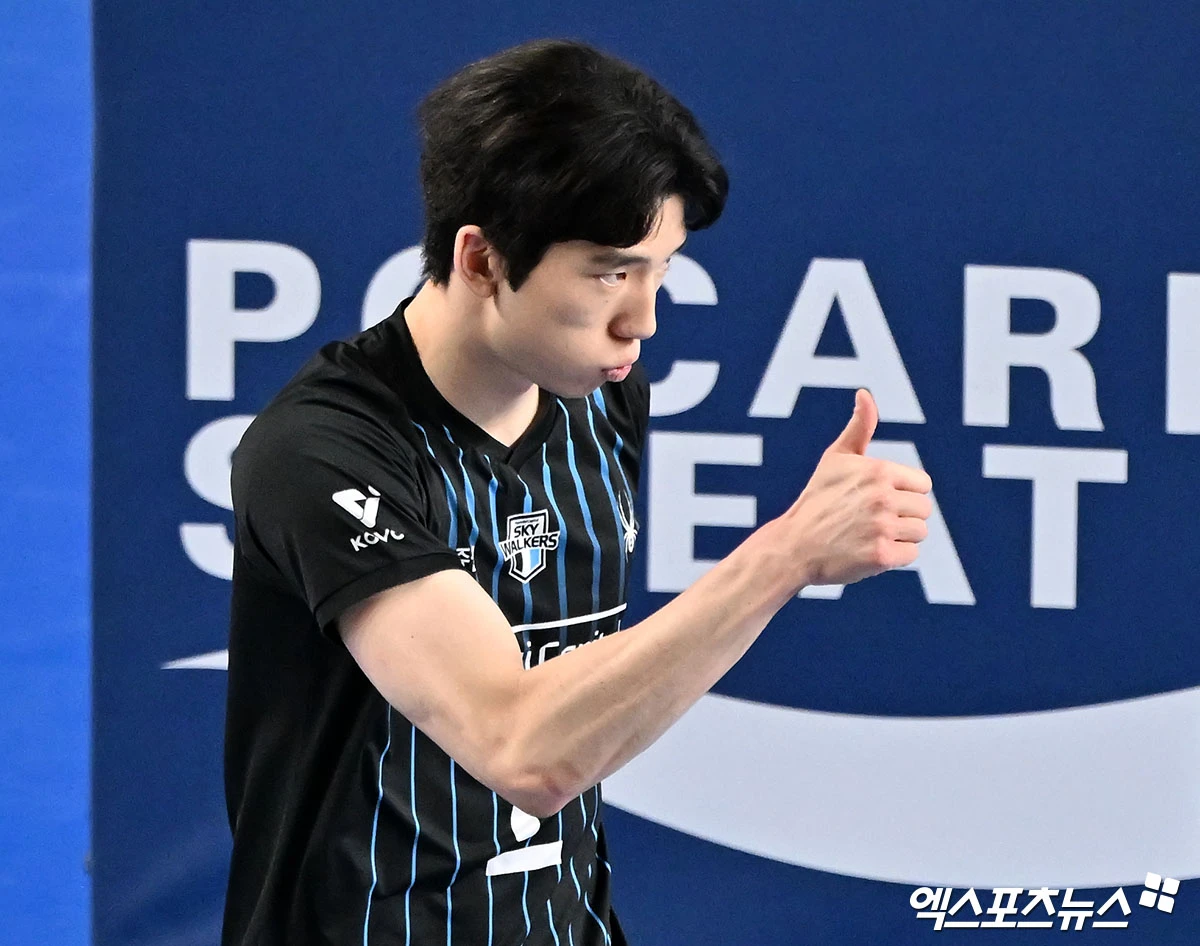 (엑스포츠뉴스 천안, 김한준 기자) 8일 오후 충남 천안유관순체육관에서 열린 '진에어 2025-2026 V-리그' 현대캐피탈과 대한항공의 챔피언결정전 4차전 경기, 현대캐피탈 허수봉이 기뻐하고 있다.