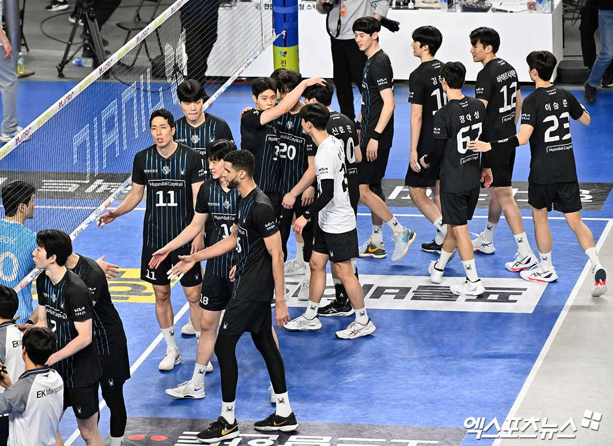 (엑스포츠뉴스 천안, 김한준 기자) 8일 오후 충남 천안유관순체육관에서 열린 '진에어 2025-2026 V-리그' 현대캐피탈과 대한항공의 챔피언결정전 4차전 경기, 현대캐피탈이 대한항공에 세트스코어 3:0(25-23 25-23 31-29) 승리를 거두며 '0% 기적' 불씨를 살렸다.