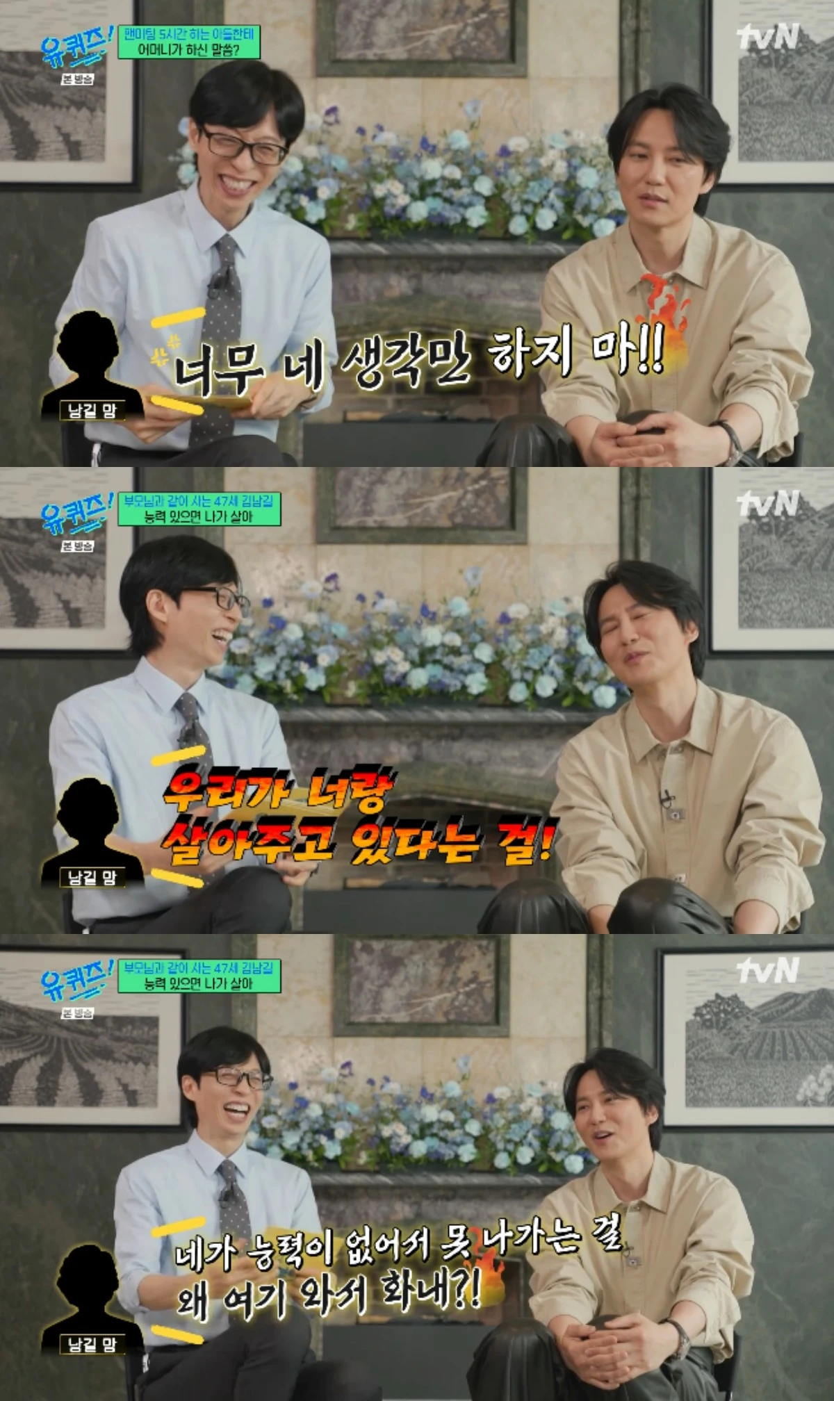 부모님과 수원에 살고 있다는 김남길은 "집까지 왔다갔다 하는 것이 너무 힘들다고 얘기를 하면 '너가 능력이 없어서 그런 걸 어쩌겠냐'고 하시더라"면서 남다른 돌직구를 날리는 어머니 에피소드를 전해 웃음을 자아냈다.
