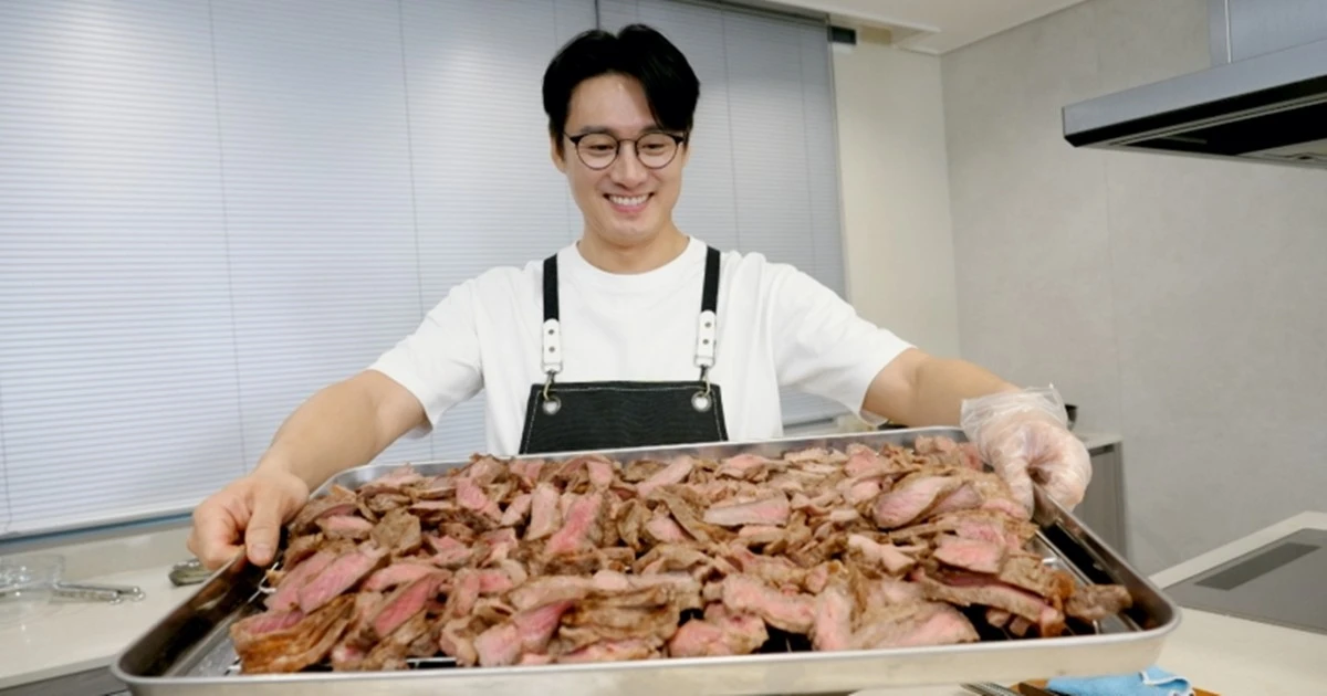아내 김소영도 인정한 파스타 장인 오상진이 조공 도시락으로 선택한 메뉴는 무려 35인분 고추장투움바파스타와 35인분 소고기 채끝살 스테이크로, 그야말로 어마어마한 양이다.