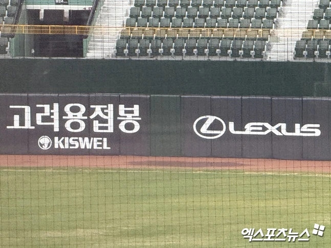 사직구장 대형 방수포 깔렸다, 9일 롯데-KT전 정상 진행 가능할까...많은 비 예보→외야 물웅덩이 생겼다 [부산 현장]