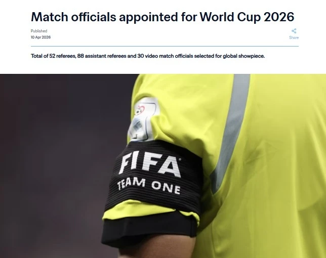 FIFA는 10일(한국시간) 북중미 월드컵에 나설 심판진 명단을 공개했다.