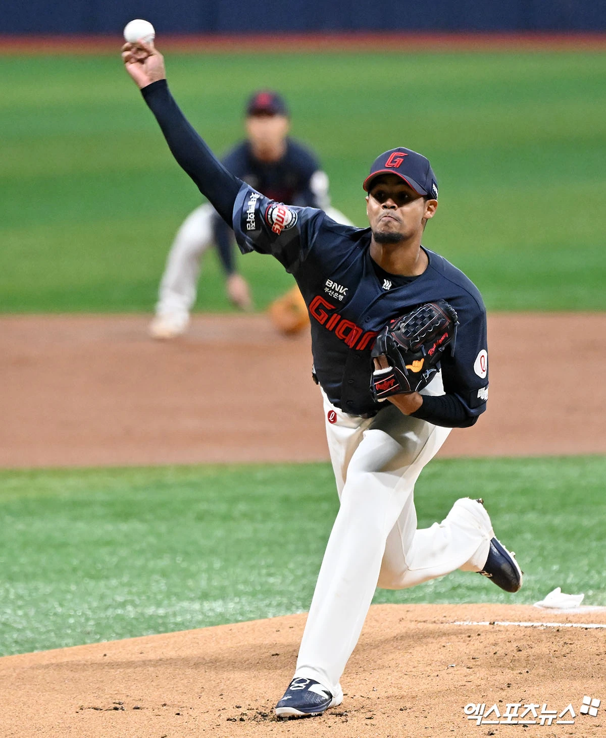 (엑스포츠뉴스 고척, 김한준 기자) 10일 오후 서울 구로구 고척스카이돔에서 열린 '2026 신한 SOL Bank KBO리그' 롯데 자이언츠와 키움 히어로즈의 경기, 1회말 롯데 선발투수 로드리게스가 공을 힘차게 던지고 있다.