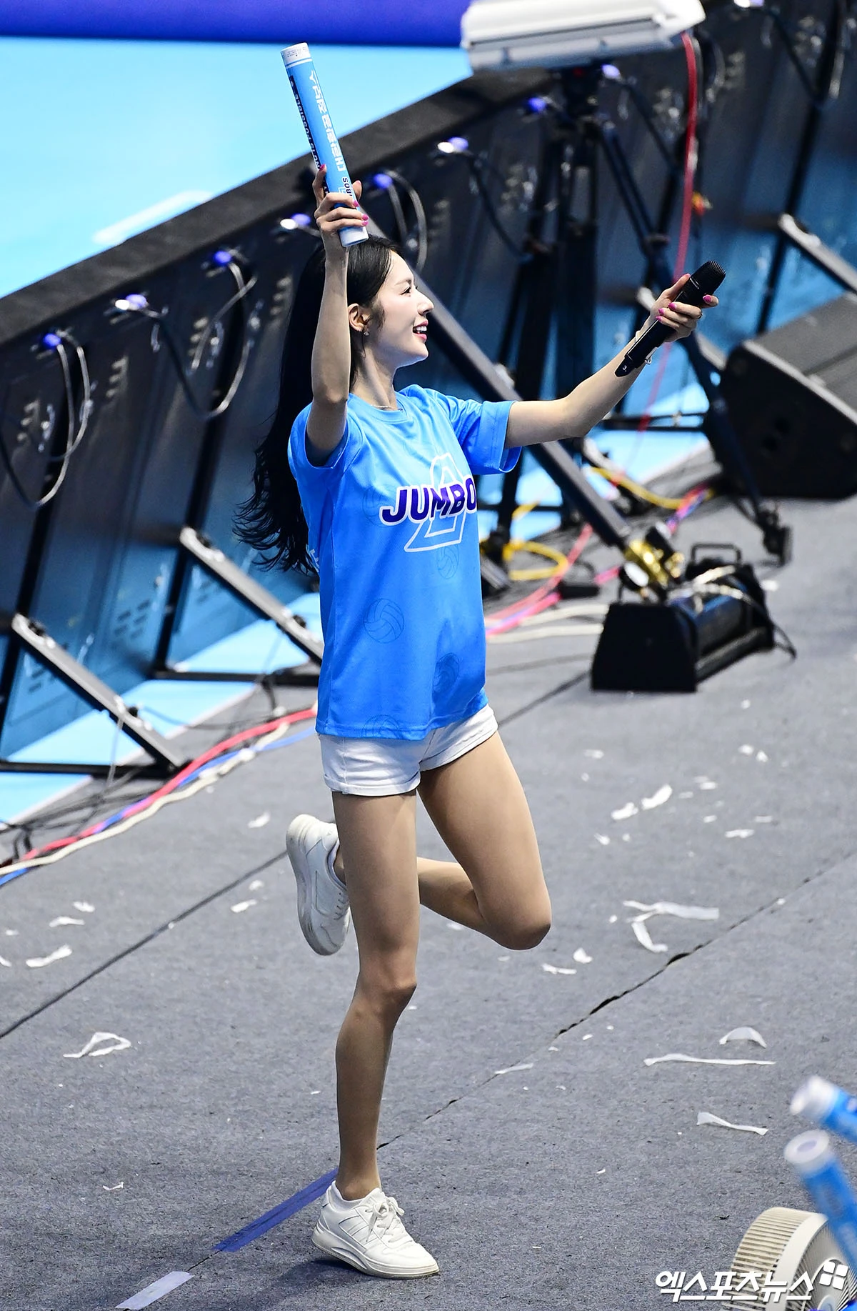 (엑스포츠뉴스 인천, 박지영 기자) 10일 오후 인천 계양체육관에서 열린 '진에어 2025-2026 V-리그' 대한항공과 현대캐피탈의 챔피언결정전 5차전 경기, 대한항공 치어리더 박기량이 열띤 응원을 펼치고 있다.