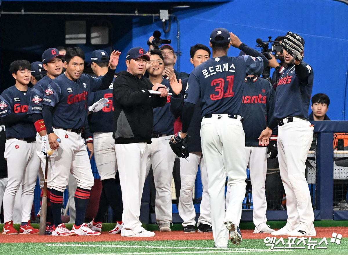 (엑스포츠뉴스 고척, 김한준 기자) 10일 오후 서울 구로구 고척스카이돔에서 열린 '2026 신한 SOL Bank KBO리그' 롯데 자이언츠와 키움 히어로즈의 경기, 8회말 수비를 마친 롯데 로드리게스가 기뻐하고 있다.
