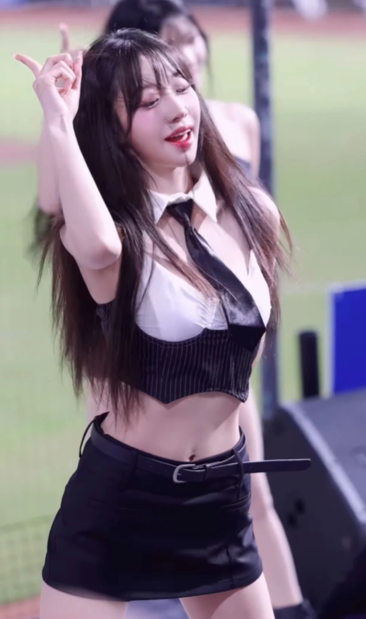 영상 속에서 우수한은 검은색 미니 스커트와 배가 드러나는 상의에 넥타이를 매는 파격적인 복장으로 팬들 앞에서 춤을 췄다.