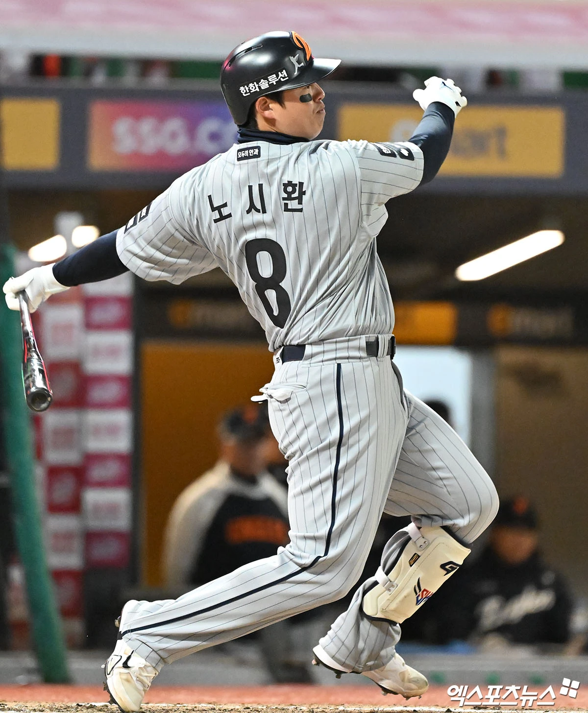 이날 노시환은 치명적인 송구 실책은 연달아 저지르면서 수비에서도 흔들렸다. 노시환은 4회초 선두타자 김도영의 땅볼 타구를 잡아 1루로 던졌지만, 송구 실책으로 출루를 허용했다. 이후 나성범의 역전 2점 홈런이 터져 아쉬움을 삼켰다.