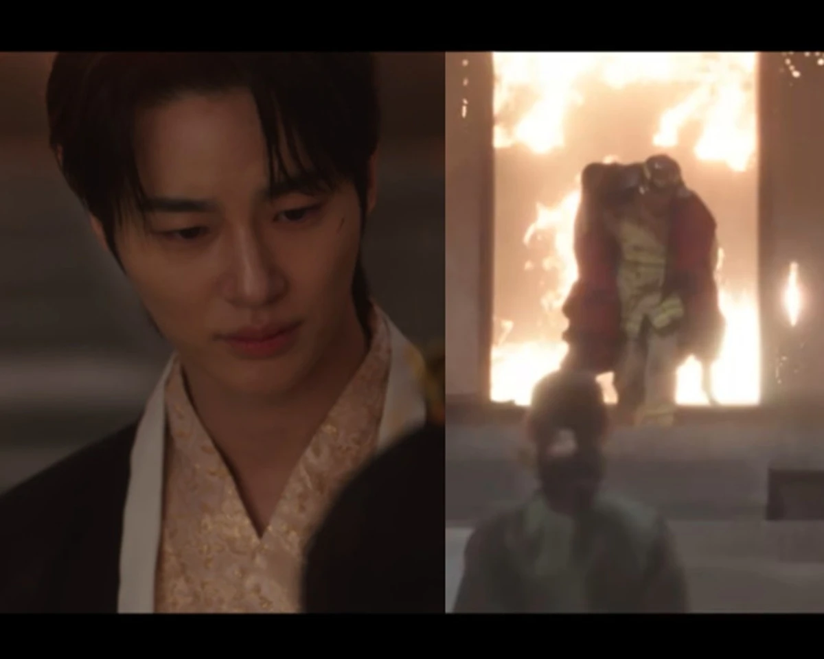 이안대군이 불이 난 궁을 지켜보며 "전하께선?"이라고 묻는 순간, 대비마마 윤이랑(공승연)이 달려와 이안대군의 뺨을 때렸다.
