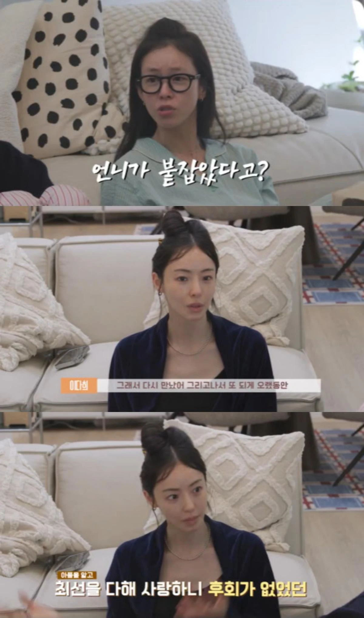 장도연은 "다시 만나고 나서 헤어질 땐 괜찮았냐"고 물었고, 이다희는 "괜찮다. 이 친구에게 할만큼 했으니까"라고 당시 감정을 이야기했다.
