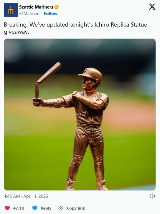 매리너스는 여기서 그치지 않고 공식 사회관계망서비스(SNS)를 통해 이날 진행된 '이치로 레플리카 동상 증정 이벤트' 문구까지 재치 있게 바꾸며 이번 해프닝을 스스로 유쾌하게 받아들이는 모습을 보였다. 당황스러운 장면을 숨기기보다 구단 차원에서 먼저 웃어넘기며 팬들과 공유했다는 점에서, 오히려 이번 사건이 더 크게 회자되는 계기가 됐다는 분석이다.