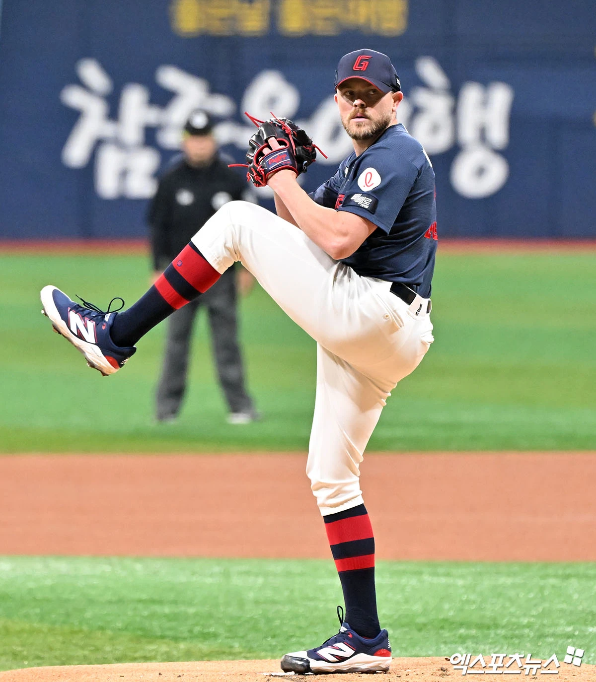(엑스포츠뉴스 고척, 김한준 기자) 11일 오후 서울 구로구 고척스카이돔에서 열린 '2026 신한 SOL Bank KBO리그' 롯데 자이언츠와 키움 히어로즈의 경기, 1회말 롯데 선발투수 비슬리가 공을 힘차게 던지고 있다.