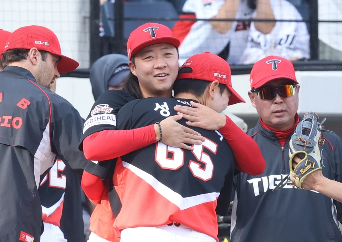 '한화 막아줘서 고마워'…'20억 좌완' 격한 포옹 왜? KIA '10R의 기적', 데뷔 첫 SV→"말 안 나올 정도로 떨려, 꼭 해내고 싶었다" [대전 현장]