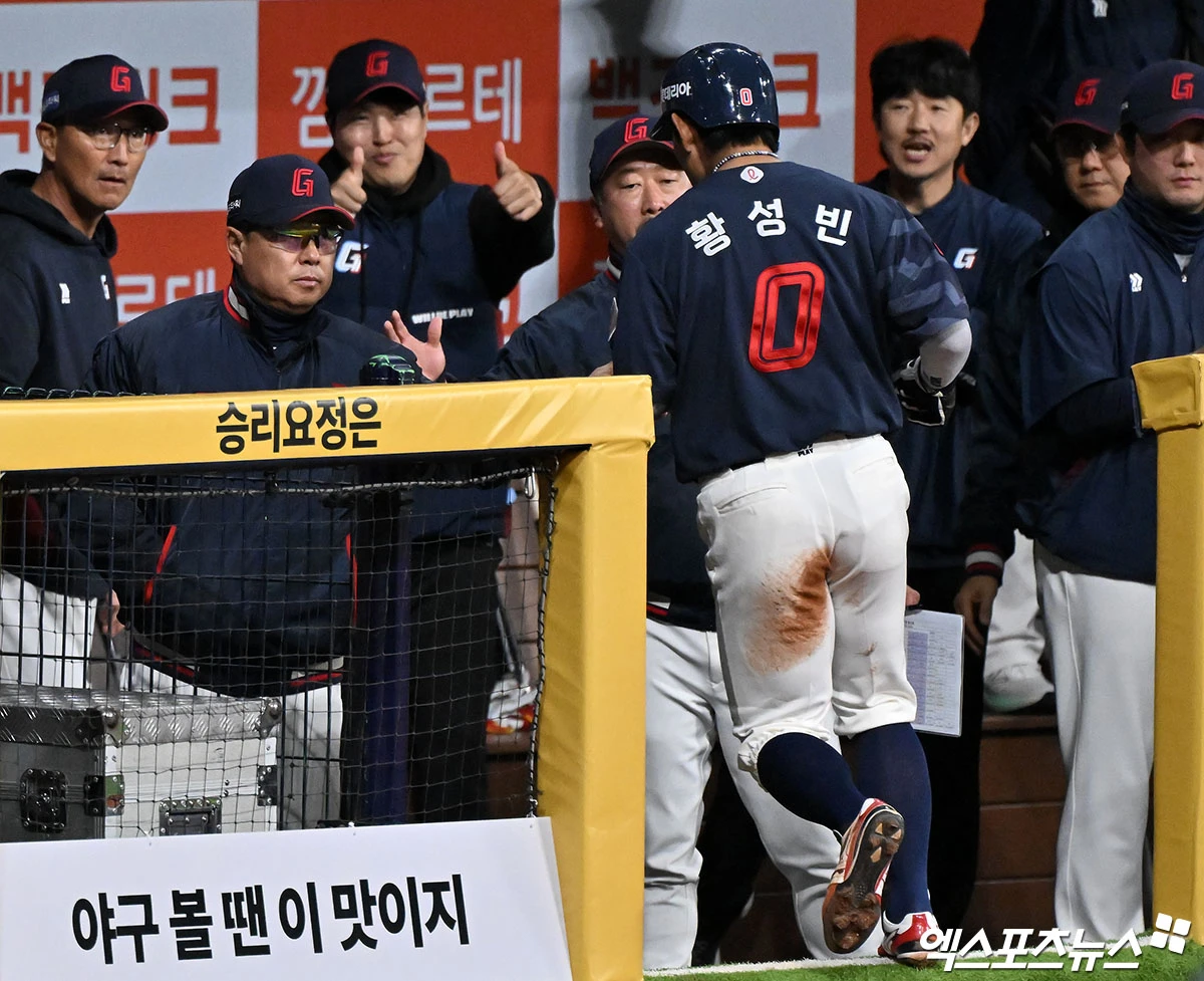김태형 감독은 "황성빈이 1번타자에서 역할을 해줘야만 팀에 활기가 돈다"면서 리드오프 역할을 착실히 수행 중인 황성빈을 칭찬했다.