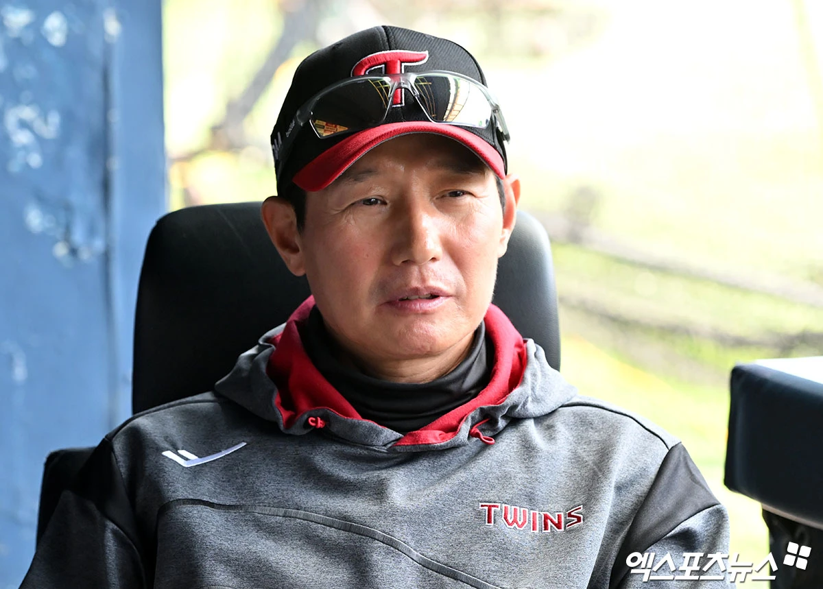 (엑스포츠뉴스 잠실, 김한준 기자) 12일 오후 서울 송파구 잠실야구장에서 열리는 '2026 신한 SOL Bank KBO리그' SSG 랜더스와 LG 트윈스의 경기, LG 염경엽 감독이 취재진과 대화를 나누고 있다.