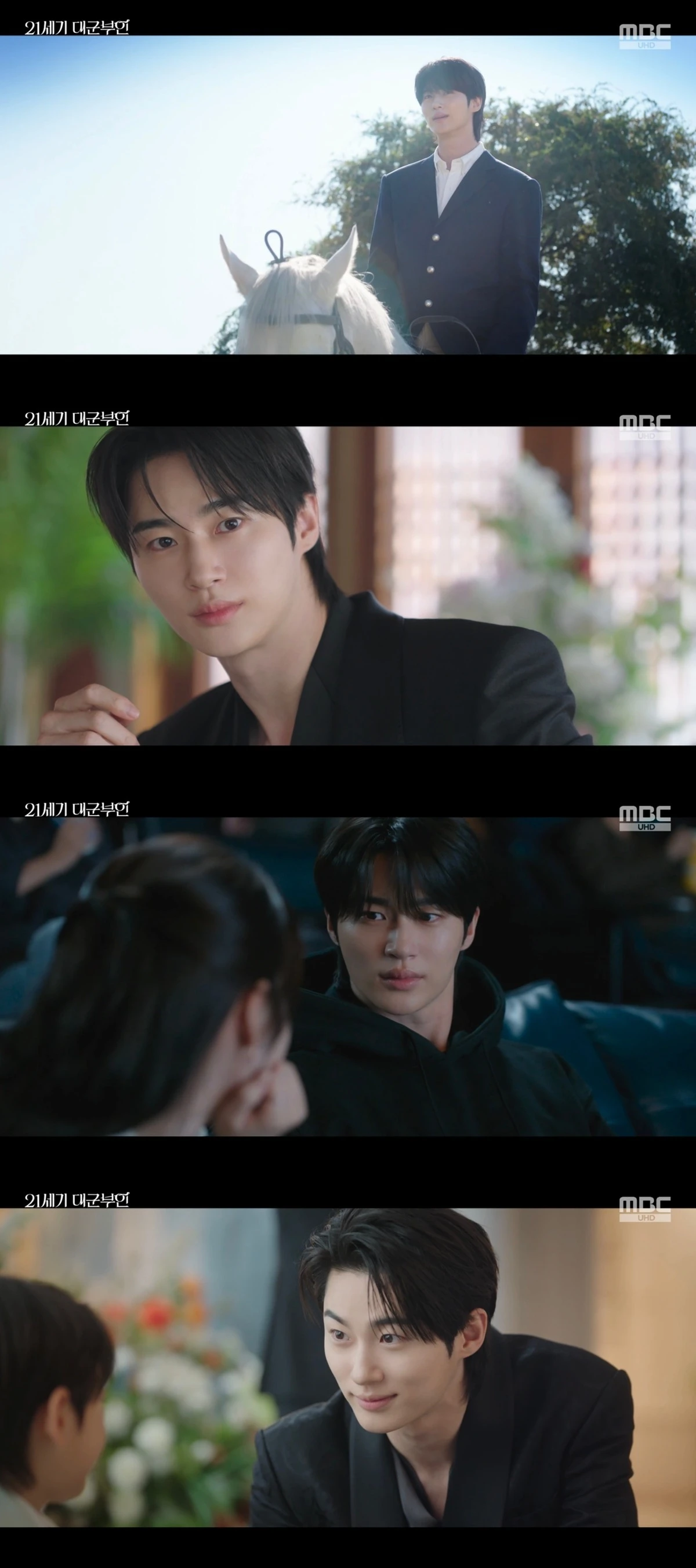 지난 11일 방송된 MBC 금토드라마 ‘21세기 대군부인’에서 이안대군(변우석 분)은 성희주(아이유)의 거침없는 플러팅을 상대했다. 앞서 성희주가 먼저 혼인을 제안했지만 이안대군은 이를 단호히 거절했던 상황. 이후 이안대군은 승마장과 한정식집, 도로, 영화관 등 “보고 싶었어요”라며 거침없이 다가오는 성희주를 일관되게 밀어냈다.