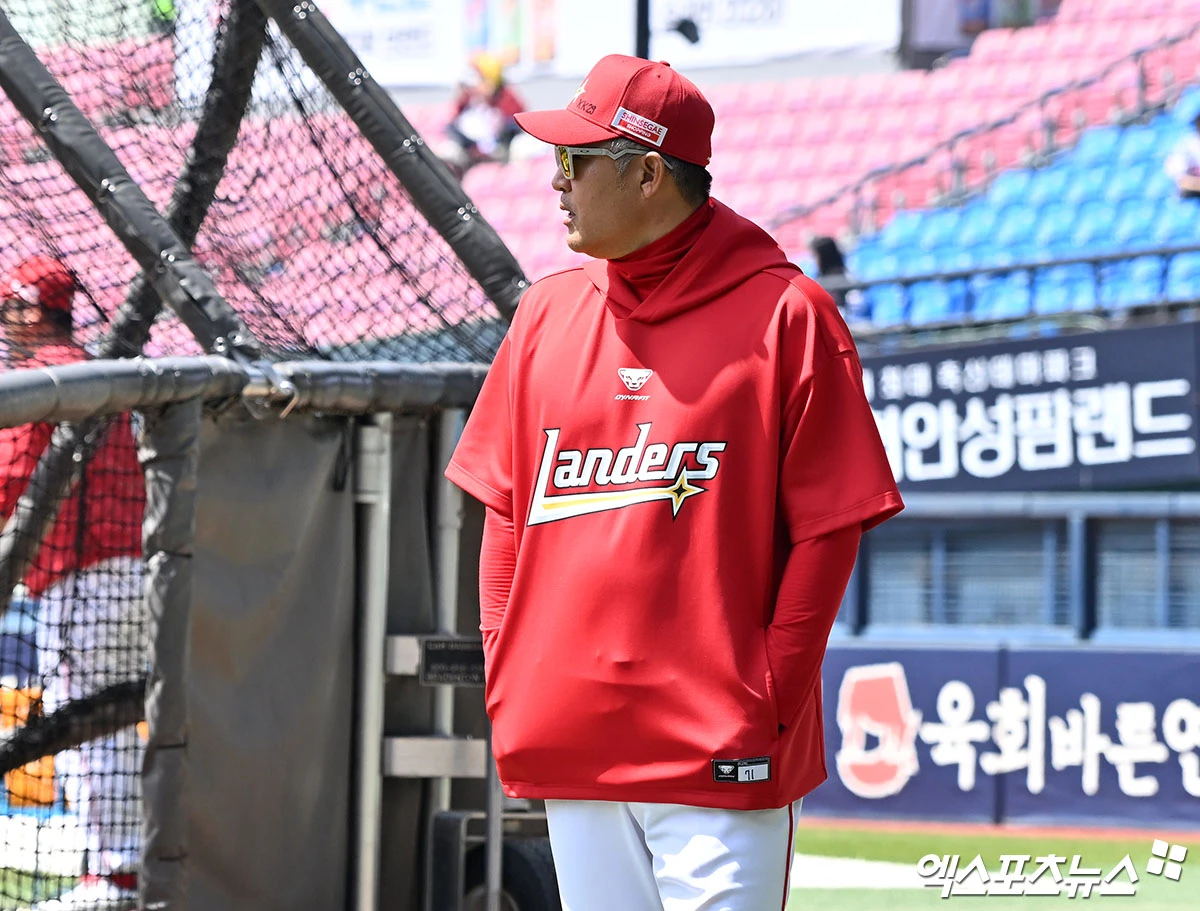 (엑스포츠뉴스 잠실, 김한준 기자) 12일 오후 서울 송파구 잠실야구장에서 열리는 '2026 신한 SOL Bank KBO리그' SSG 랜더스와 LG 트윈스의 경기, SSG 이숭용 감독이 선수들의 훈련을 지켜보고 있다.