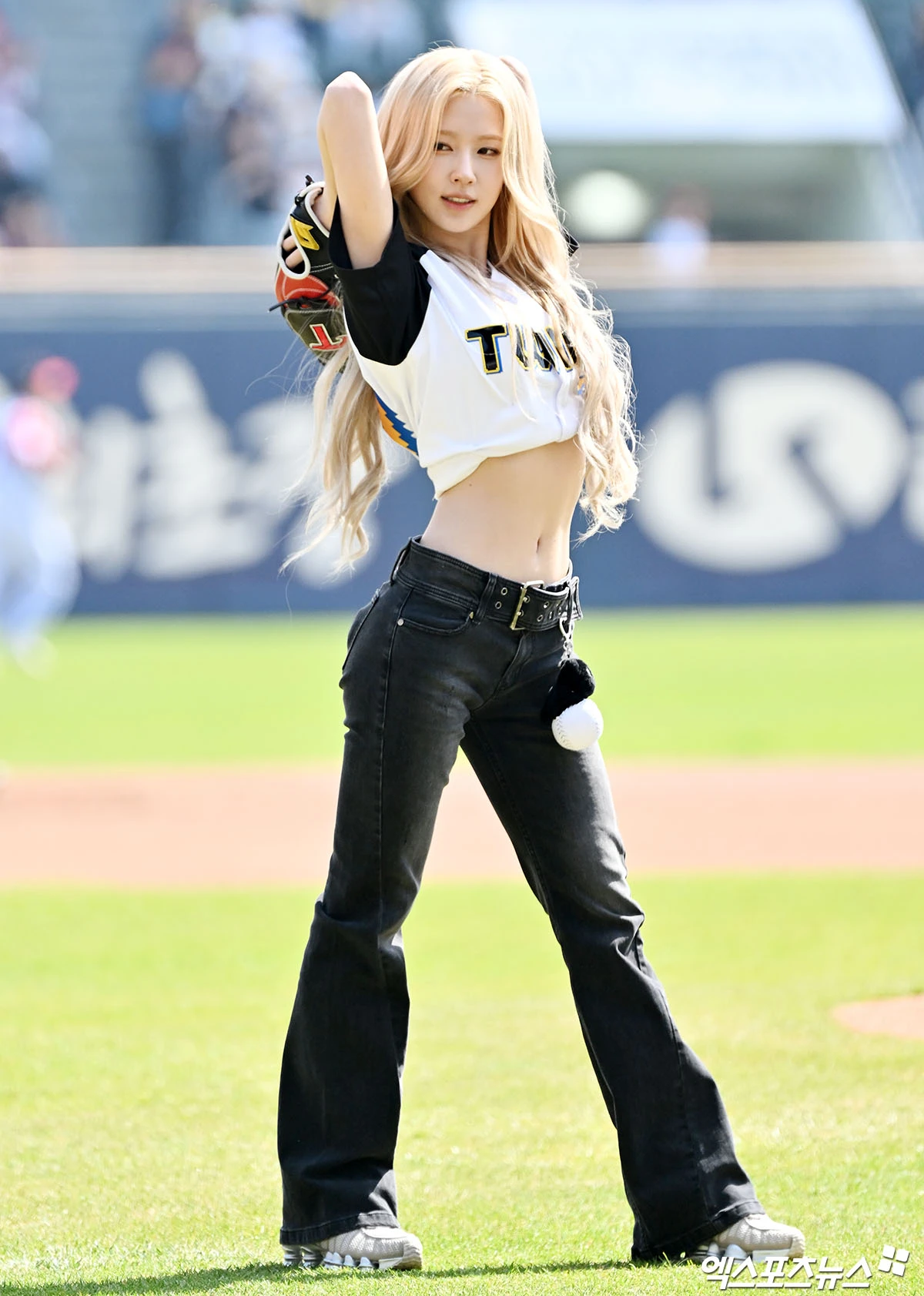 (엑스포츠뉴스 잠실, 김한준 기자) 12일 오후 서울 송파구 잠실야구장에서 열린 '2026 신한 SOL Bank KBO리그' SSG 랜더스와 LG 트윈스의 경기, 경기 전 그룹 아이들 미연이 시구에 임하고 있다.
