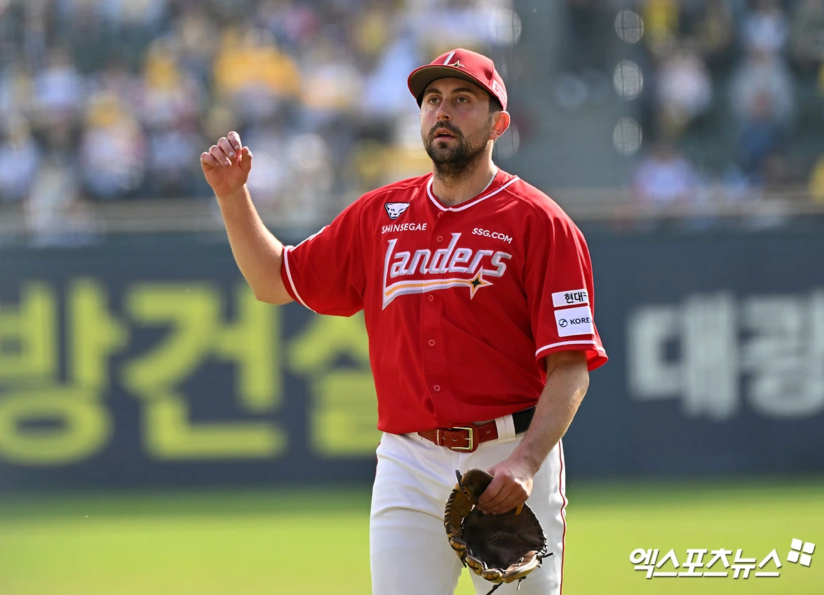(엑스포츠뉴스 잠실, 김한준 기자) 12일 오후 서울 송파구 잠실야구장에서 열린 '2026 신한 SOL Bank KBO리그' SSG 랜더스와 LG 트윈스의 경기, 5회말 1사 1,3루 SSG 베니지아노가 마운드를 내려가고 있다.