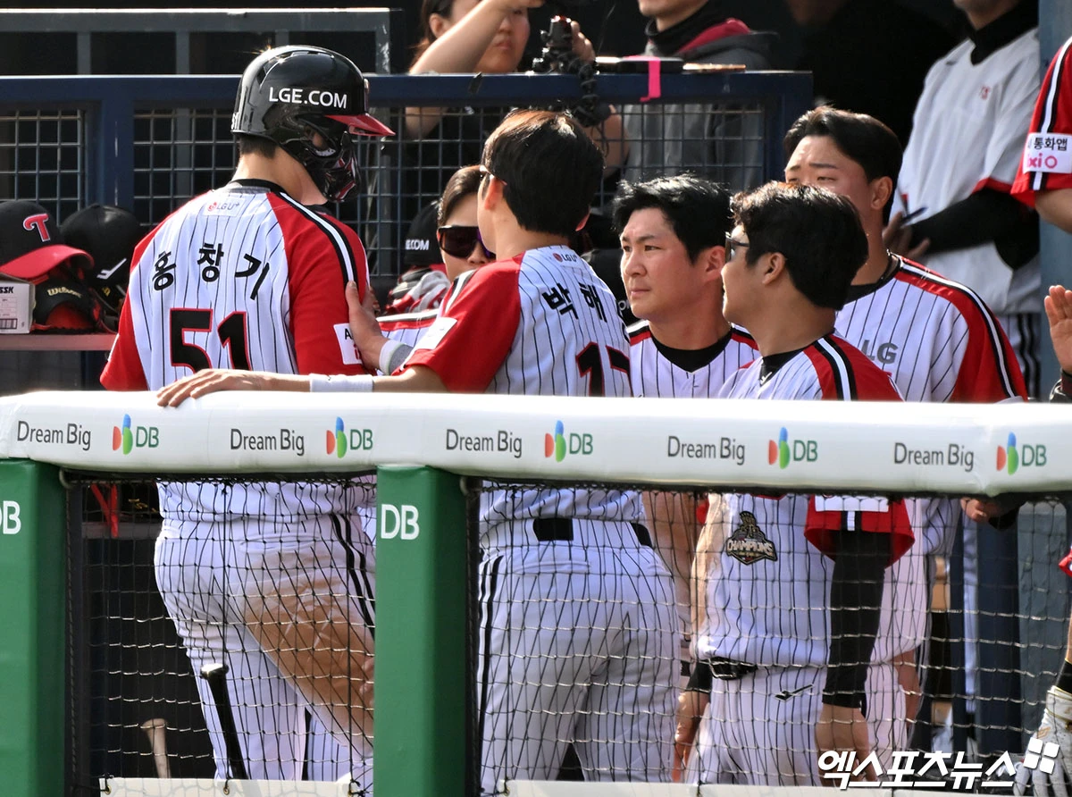 홍창기 ‘최원영과 교체’[포토]