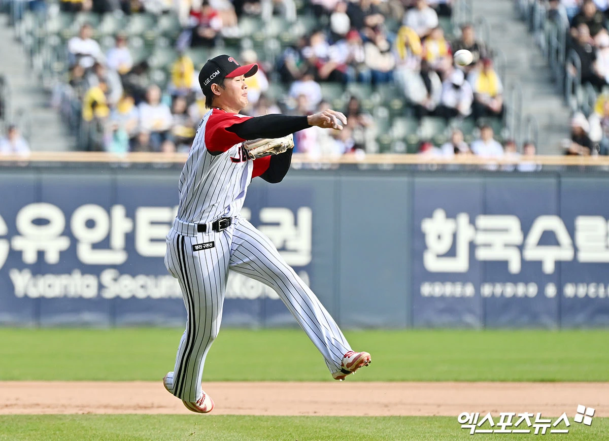 9회초 1사 1루 LG 이영빈이 SSG 이지영의 타구를 처리하고 있다.