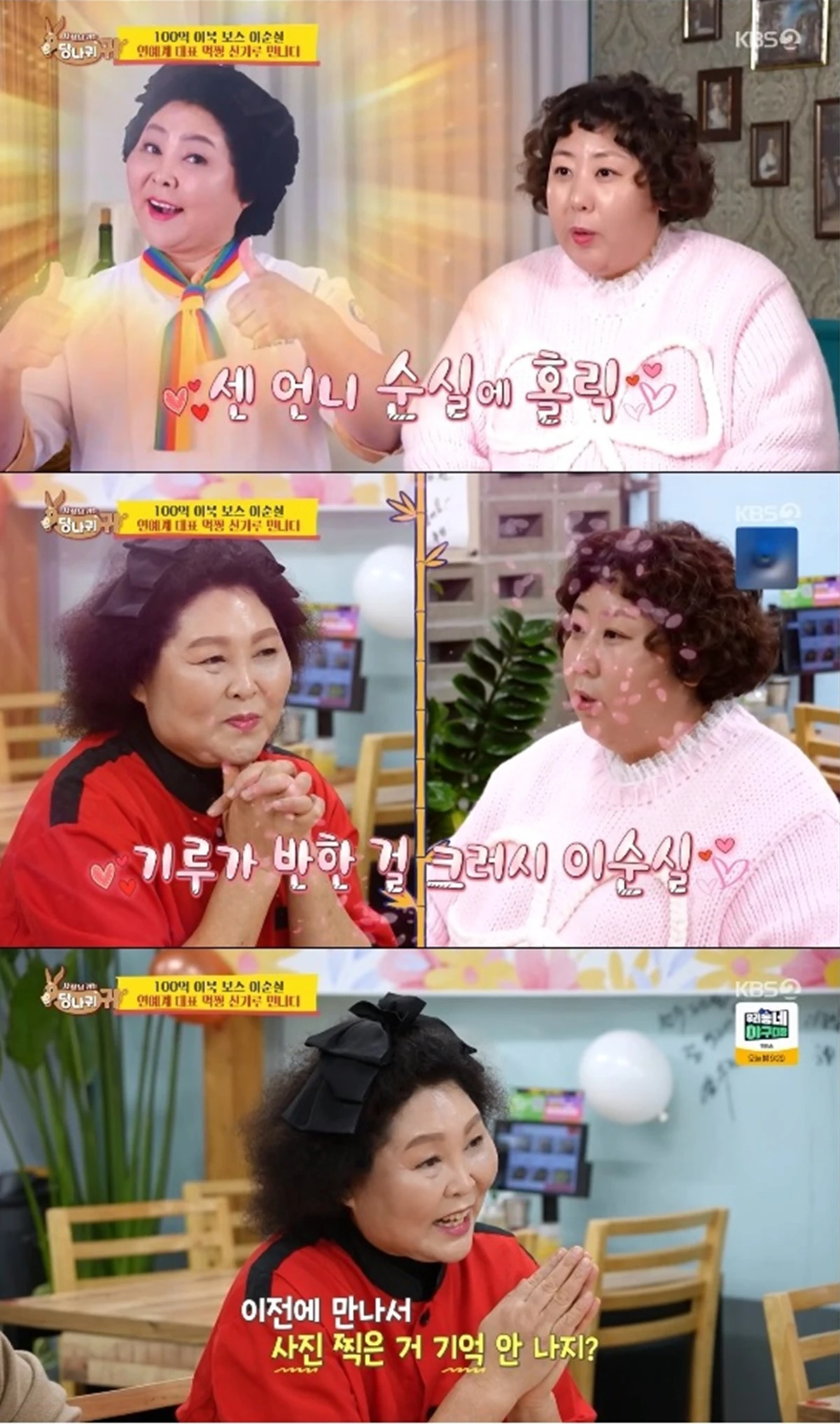 신기루는 이순실의 센 언니 매력에 빠져서 평소 친분이 있는 김숙을 통해 만남이 성사된 것이라고 했다.