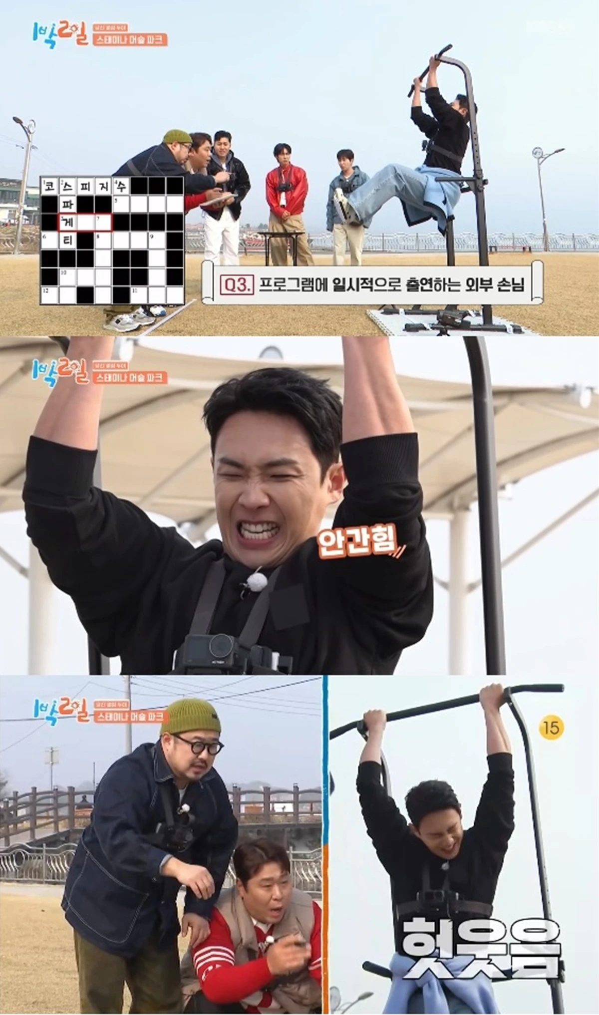 이준은 안간힘을 써 가며 철봉에 매달렸고 재준 팀은 정답을 7개 맞혔다.