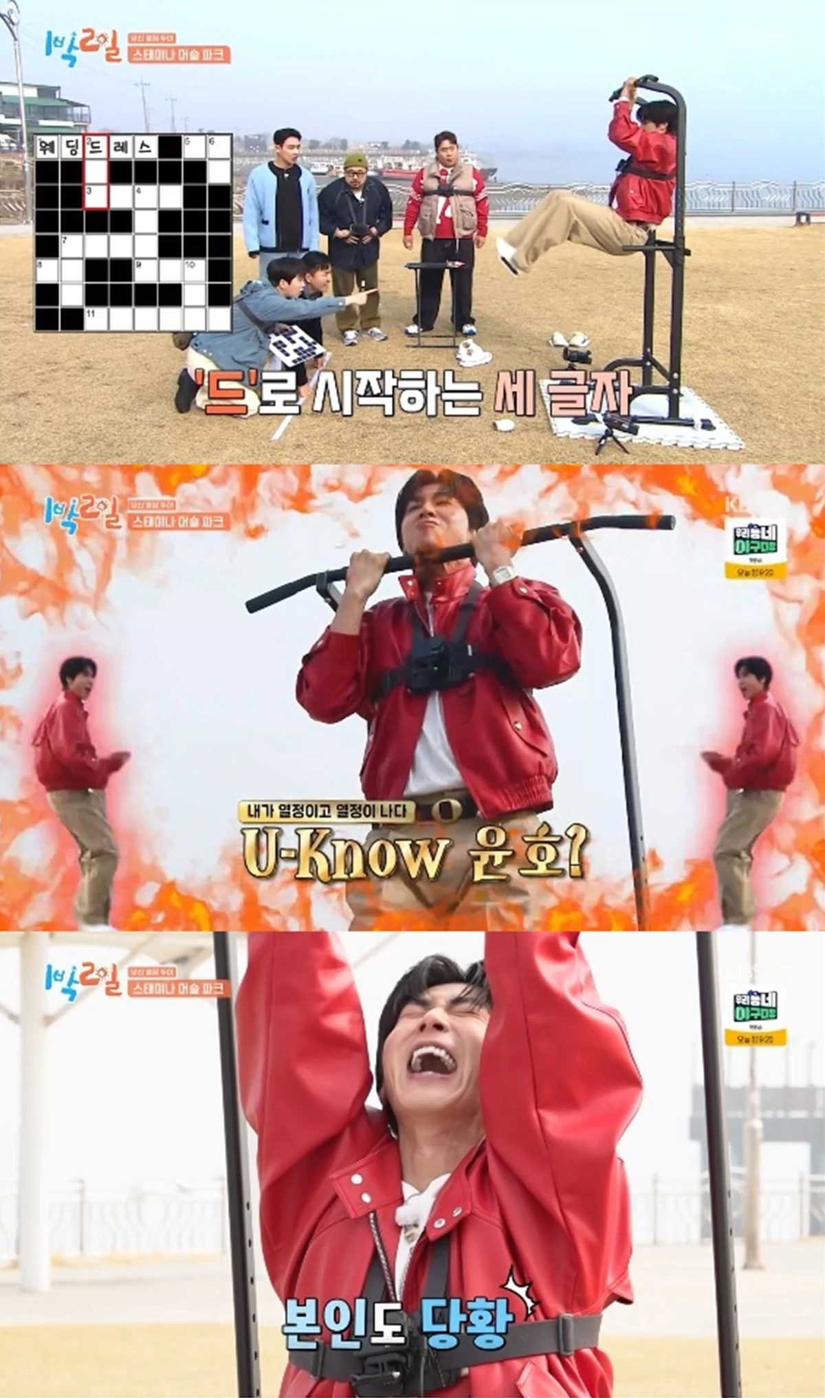 유노윤호는 자신 있게 나섰지만 금방 체력이 방전된 모습을 보였다. 유노윤호는 "이게 힘드네. 장난 아니네"라고 본심을 털어놨다.