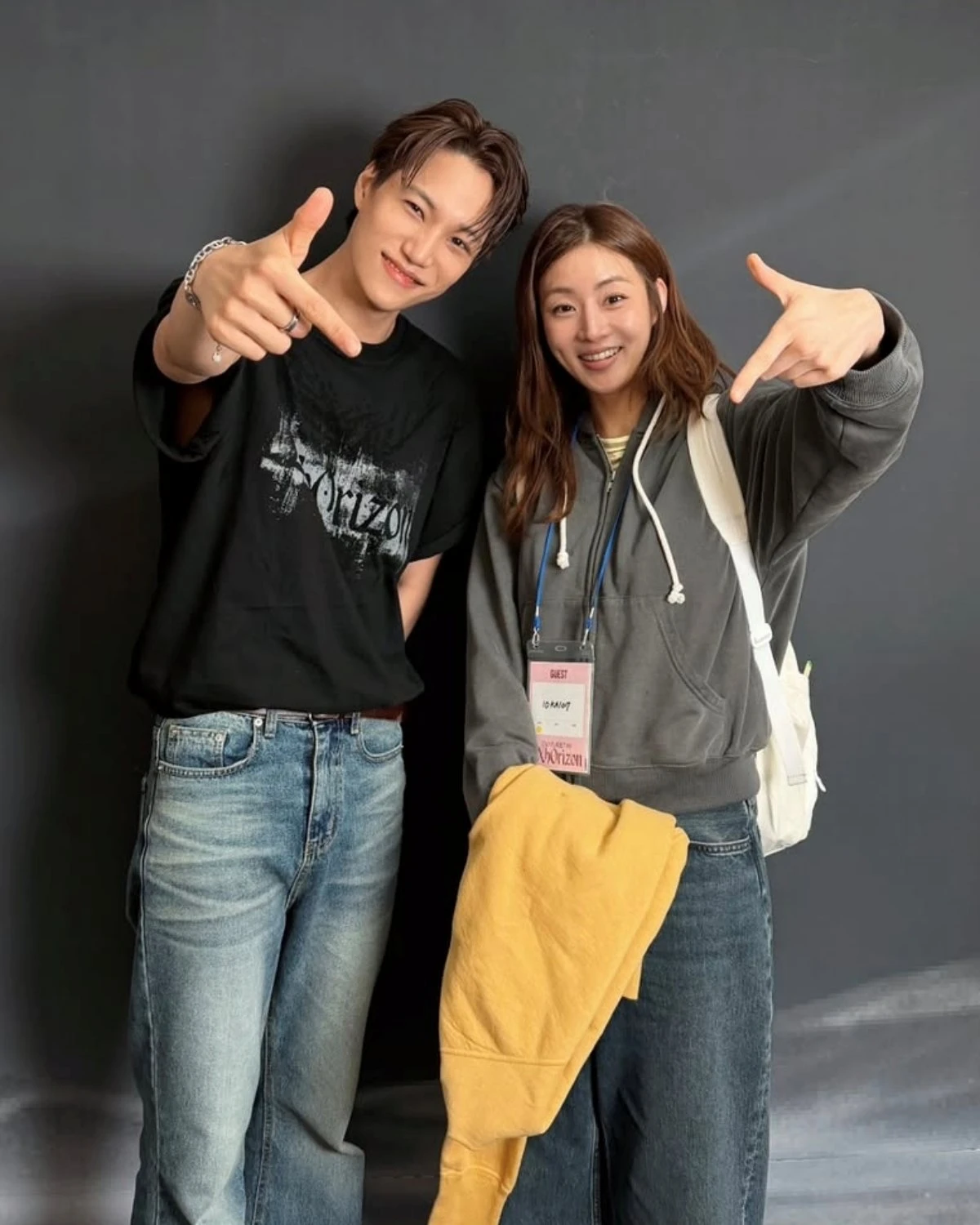 공개된 사진 속 강소라는 엑소 멤버 카이와 함께 엑소엘(팬덤 명) 포즈인 'L' 손가락 포즈를 취한 채 밝게 미소 짓고 있어 눈길을 끈다.