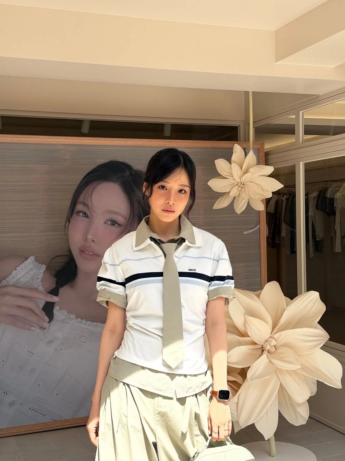 지난 12일 공개된 사진에서 22기 옥순은 화이트 셔츠에 타이와 플리츠 스커트를 매치한 교복 콘셉트로 단정하면서도 청순한 분위기를 연출했다.