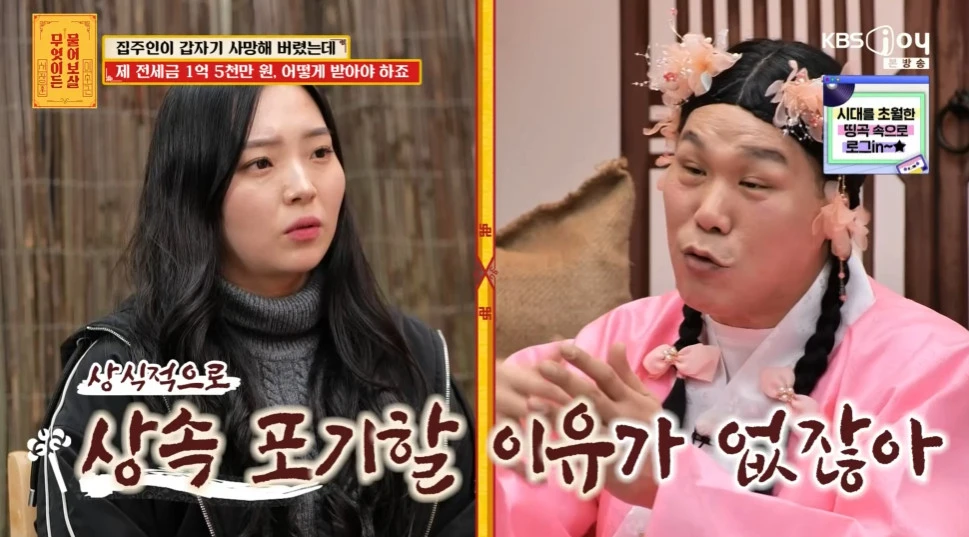 13일 방송된 KBS Joy '무엇이든 물어보살'에서는 전세 계약 만기를 앞두고 집주인의 사망 사실을 뒤늦게 알게 된 28세 사연자의 고민이 전파를 탔다.