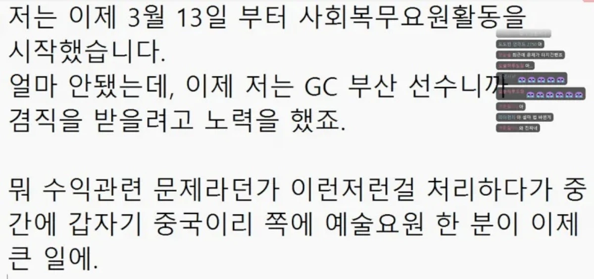 '서그남'은 방송에서 최근 타 종목에서 불거진 예술체육요원 관련 이슈가 배경에 있음을 시사했다. 이어 충남 CNJ 소속 '제트' 배호영의 겸직 불가 공지가 올라오면서 사안은 한 선수의 개인사에서 종목 전체의 문제로 번졌다. 현재 같은 처지에 놓인 선수·코치는 '서그남', '제트', '위드', '지워크' 등 총 4명이다.