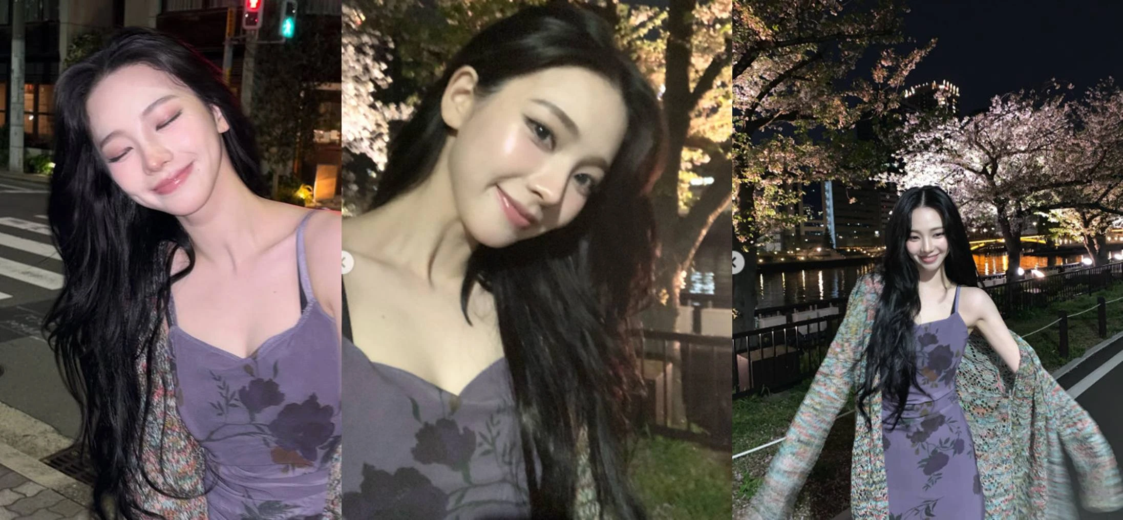 특히 슬림한 라인의 원피스와 루즈한 니트 가디건을 매치한 스타일링으로 여리여리한 실루엣을 강조하며 눈길을 끌었다. 긴 생머리와 또렷한 이목구비, 은은한 미소가 더해지며 '인간 벚꽃'이라는 수식어를 실감케 했다.