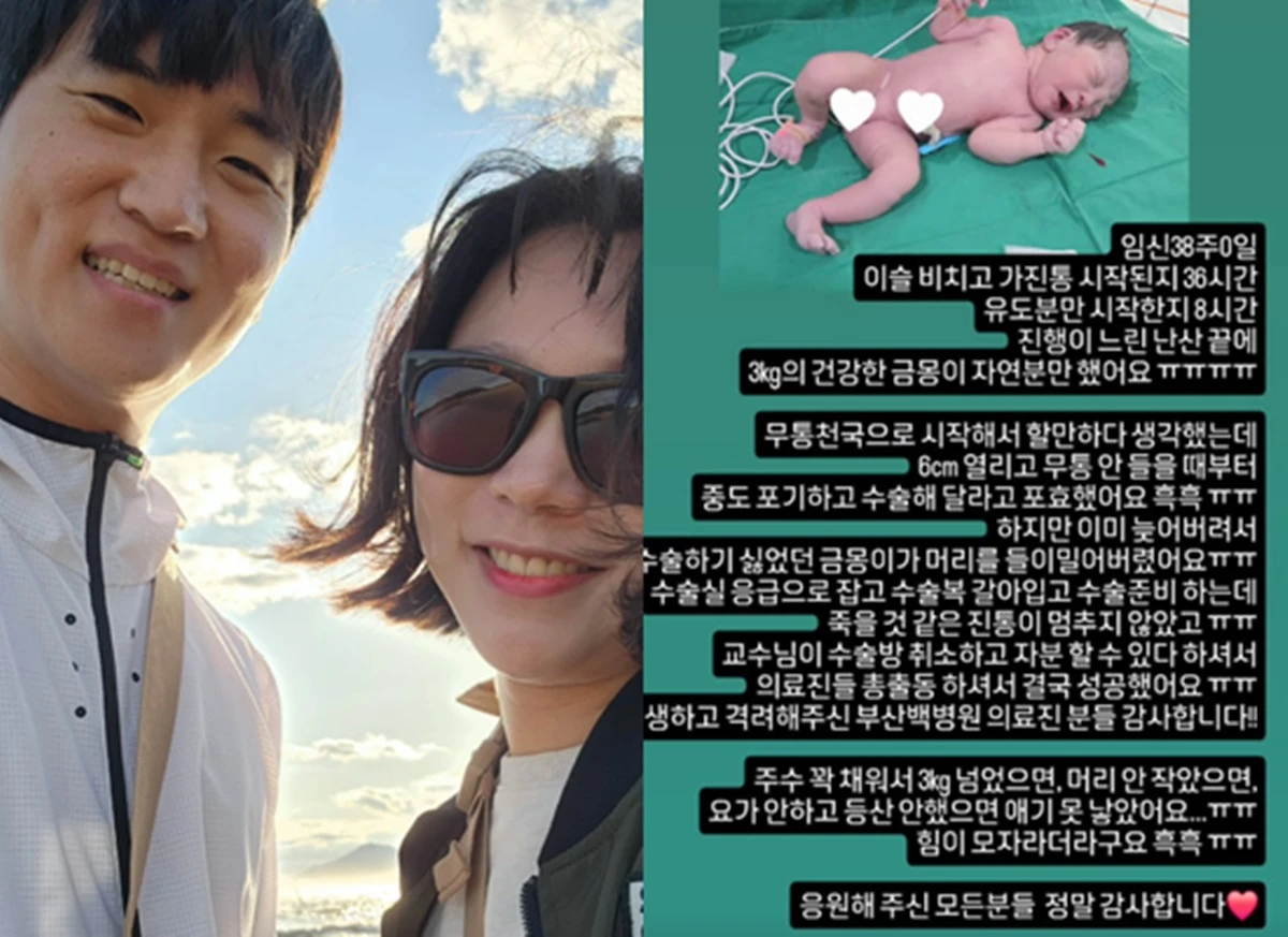 또한 "주수 꽉 채워서 3kg 넘었으면, 머리 안 작았으면, 요가 안 하고 등산 안 했으면 아기로 낳았을까 싶다. 힘이 모자라더라"고 털어놓으며 쉽지 않았던 출산 과정을 전했다.
