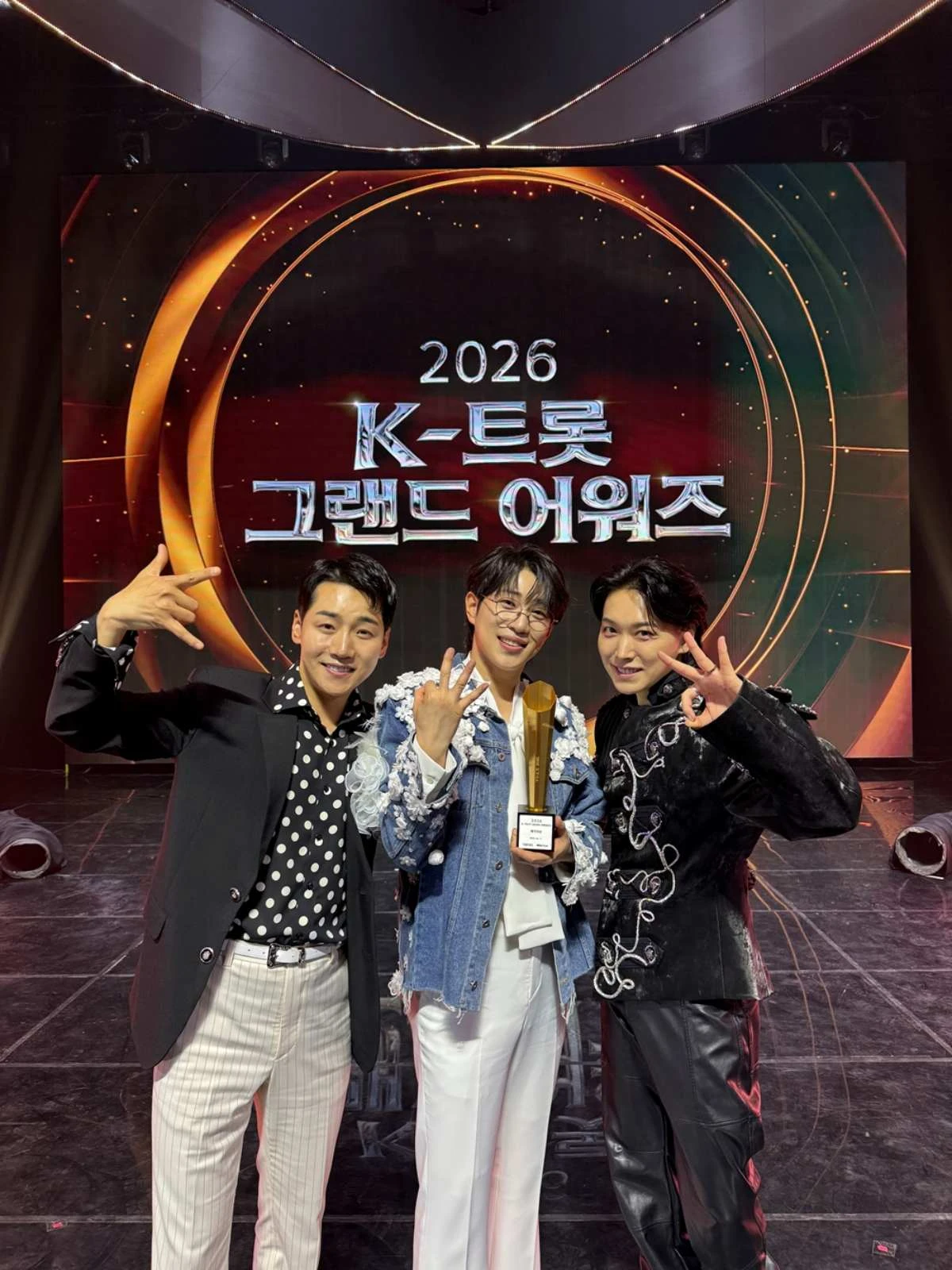 이날 김균민 회장을 대신해 토탈셋 소속 가수 박군과 성민, 안성훈이 대리 수상자로 나섰다. 이 세 사람은 위트 넘치는 수상 소감과 유쾌한 에너지를 발산하며 현장의 축제 분위기를 한층 뜨겁게 달궜다.
