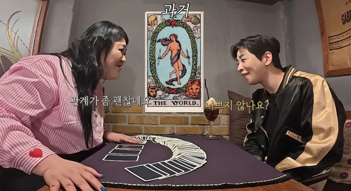 이국주는 딘딘이 뽑은 타로 카드를 보며 "조금 괜찮다. 현재는 왜 고민하고 있는지 모르겠다"라며 "전에는 관계가 탄탄했는데 지금은 결정의 길에 서 있다. '좀 지켜볼까?'하면서 벽이 있긴 하다"라고 해석했다.