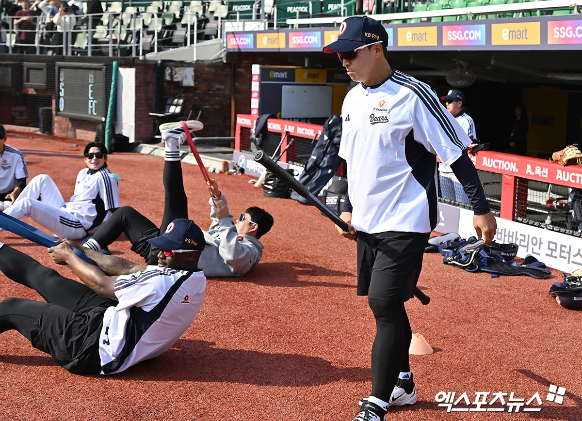 (엑스포츠뉴스 인천, 김한준 기자) 14일 오후 인천SSG랜더스필드에서 열리는 '2026 신한 SOL Bank KBO리그' 두산 베어스와 SSG 랜더스의 경기, 두산 손아섭이 훈련을 위해 그라운드로 나오고 있다.