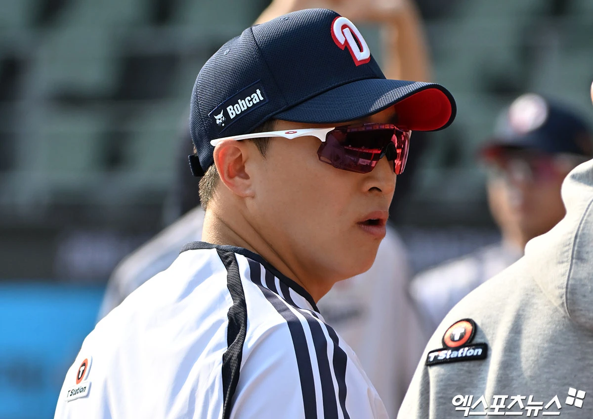 (엑스포츠뉴스 인천, 김한준 기자) 14일 오후 인천SSG랜더스필드에서 열리는 '2026 신한 SOL Bank KBO리그' 두산 베어스와 SSG 랜더스의 경기, 두산 손아섭이 훈련에 임하고 있다.