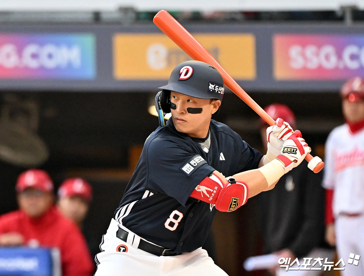 (엑스포츠뉴스 인천, 김한준 기자) 14일 오후 인천SSG랜더스필드에서 열린 '2026 신한 SOL Bank KBO리그' 두산 베어스와 SSG 랜더스의 경기, 1회초 무사 1루 두산 손아섭이 타격에 임하고 있다.